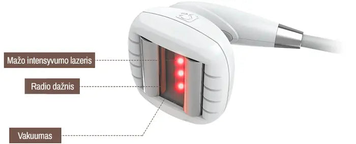 Ypač veiksmingas 2 MHz radijo dažnio (RF), 658 nm žemo intensyvumo lazerio ir vakuumo technologijų derinys kūno kontūrams formuoti. Specializuotas automatinis volas su vakuumo funkcija efektyviai kovoja su celiulitu.
