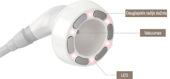 Rankenėlėje efektyviai veikia kartu 2MHz daugiapoliu radijo dažniu, vakuumu ir LED. Šioje rankenėlėje naudojamas vakuumas efektyviai šalina atliekas, stimuliuodamas limfos cirkuliaciją. Skirtingų dydžių rankenėlės leidžia pasiekti ir efektyviai atlikti procedūrą visose kūno vietose.